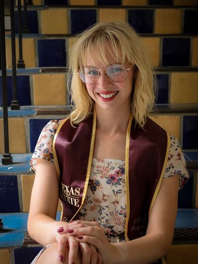Amelia Hobson is a native of San Antonio, Texas. She recently graduated from Texas State University with a degree in Performance and Production with a minor in Business Administration. Throughout her time at Texas State University, she was involved in many organizations such as Alpha Psi Omega, Jeremy Torres Lab Theatre, and KTSW 89.9. These organizations helped her on her creative and professional journey. These experiences deepened her passion for both performing and behind-the-scenes work, while also sparking an interest in communication and community building.